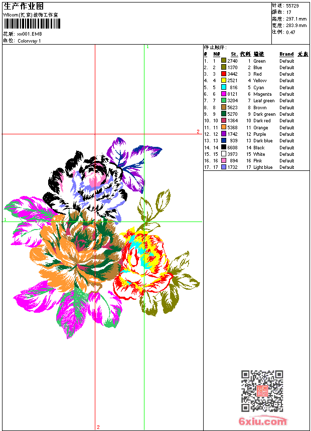 - emb花版参数: 大小:206.00 KB / 尺寸:284*297[毫米] / 针数:55729针 / 线色:17 / 格式:emb / 版本:9