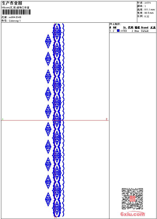 - emb花版参数: 大小:94.00 KB / 尺寸:81*811[毫米] / 针数:31771针 / 线色:1 / 格式:emb / 版本:9