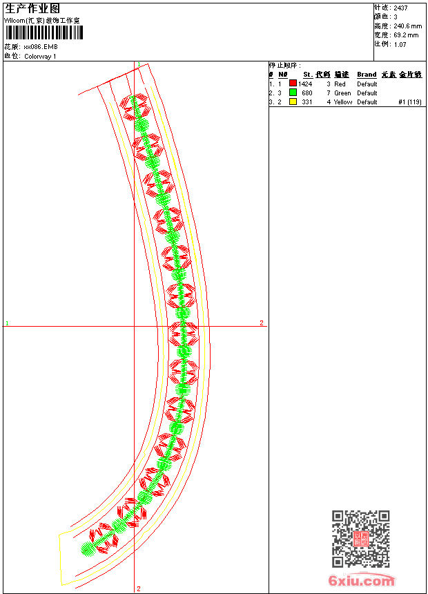 - emb花版参数: 大小:42.50 KB / 尺寸:69*241[毫米] / 针数:2437针 / 线色:3 / 格式:emb / 版本:9