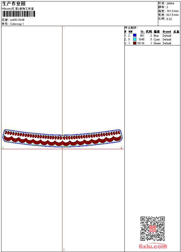 - emb花版参数: 大小:118.50 KB / 尺寸:622*102[毫米] / 针数:20063针 / 线色:3 / 格式:emb / 版本:9