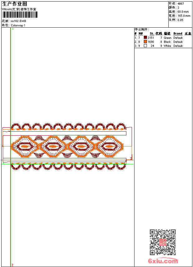 - emb花版参数: 大小:34.50 KB / 尺寸:166*60[毫米] / 针数:4867针 / 线色:3 / 格式:emb / 版本:9