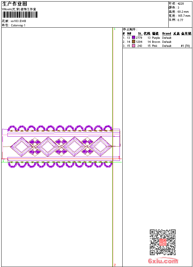 - emb花版参数: 大小:29.00 KB / 尺寸:166*60[毫米] / 针数:4228针 / 线色:3 / 格式:emb / 版本:9