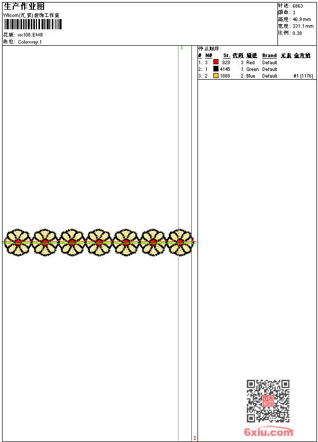 - emb花版参数: 大小:279.50 KB / 尺寸:331*47[毫米] / 针数:6863针 / 线色:3 / 格式:emb / 版本:9