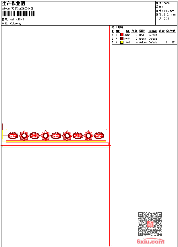 - emb花版参数: 大小:46.00 KB / 尺寸:330*75[毫米] / 针数:5000针 / 线色:3 / 格式:emb / 版本:9
