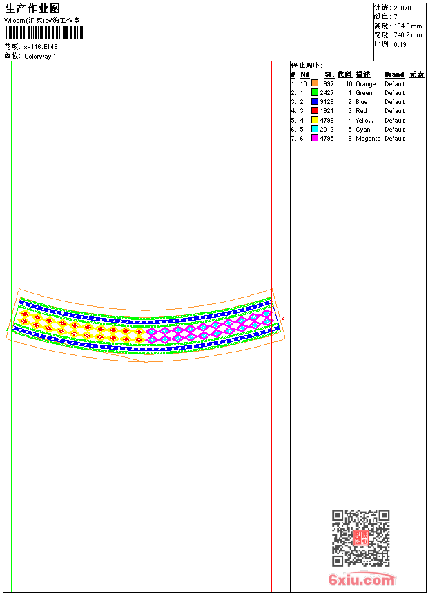 - emb花版参数: 大小:82.00 KB / 尺寸:740*194[毫米] / 针数:26078针 / 线色:7 / 格式:emb / 版本:9