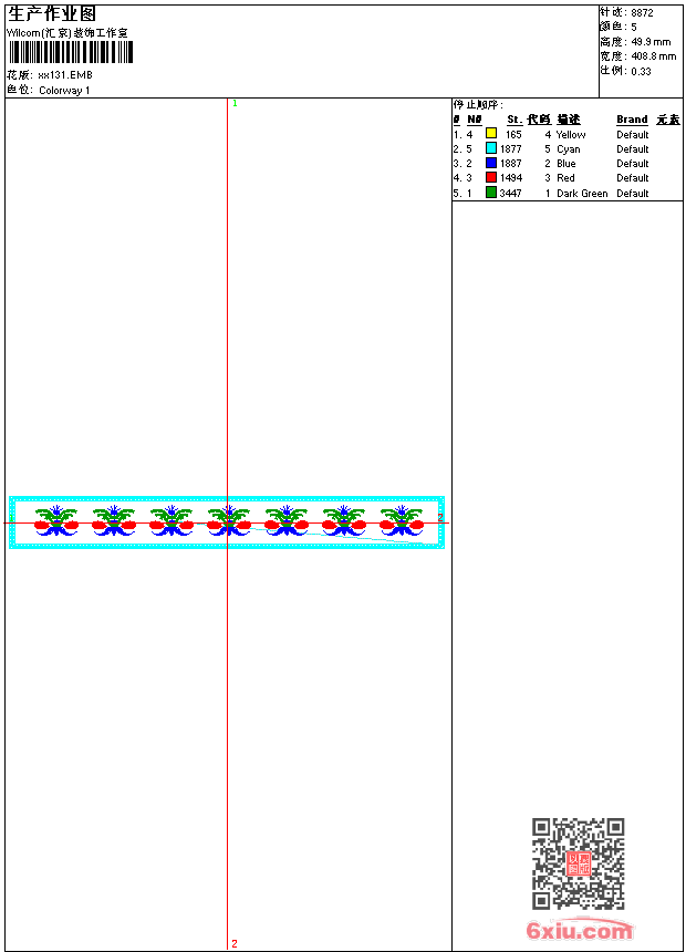 - emb花版参数: 大小:34.50 KB / 尺寸:409*50[毫米] / 针数:8872针 / 线色:5 / 格式:emb / 版本:9