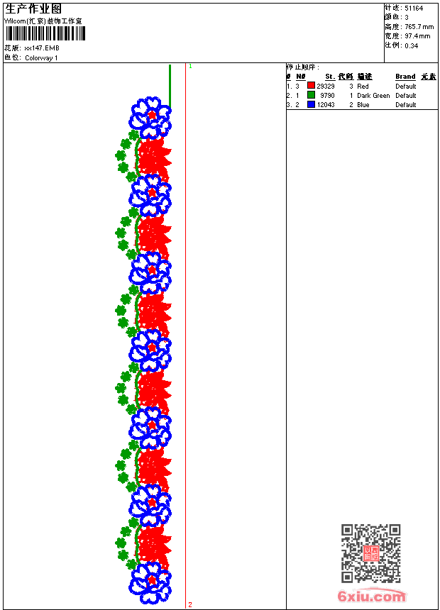 - emb花版参数: 大小:326.00 KB / 尺寸:97*766[毫米] / 针数:51164针 / 线色:3 / 格式:emb / 版本:9
