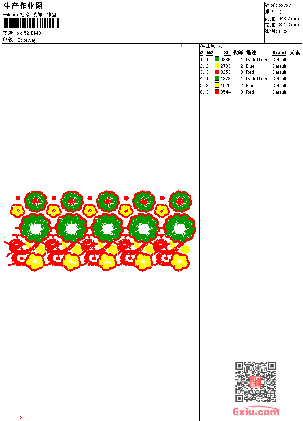- emb花版参数: 大小:60.50 KB / 尺寸:351*147[毫米] / 针数:22797针 / 线色:3 / 格式:emb / 版本:9