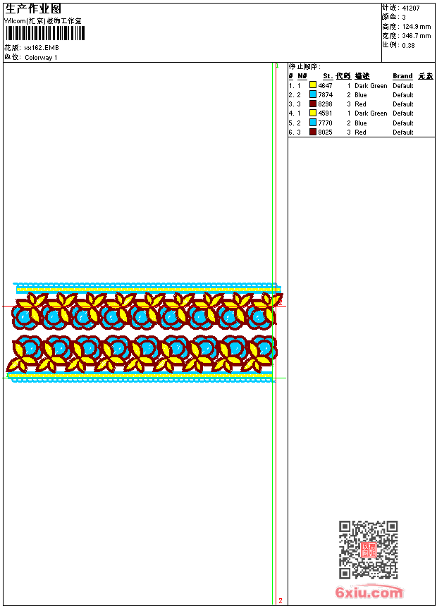 - emb花版参数: 大小:98.50 KB / 尺寸:347*125[毫米] / 针数:41207针 / 线色:3 / 格式:emb / 版本:9