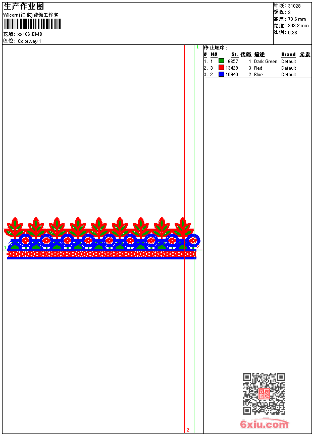 - emb花版参数: 大小:79.00 KB / 尺寸:343*74[毫米] / 针数:31028针 / 线色:3 / 格式:emb / 版本:9