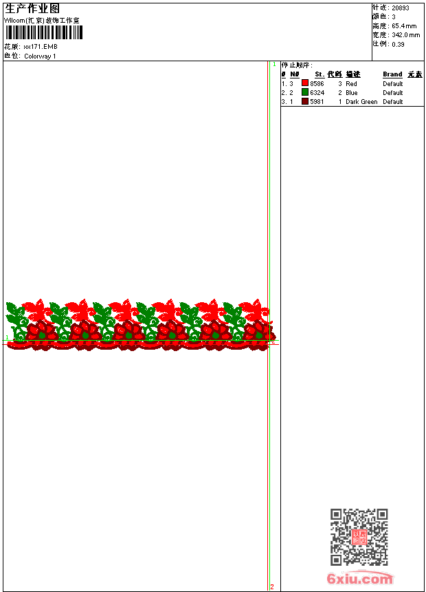 - emb花版参数: 大小:44.00 KB / 尺寸:342*65[毫米] / 针数:20893针 / 线色:3 / 格式:emb / 版本:9