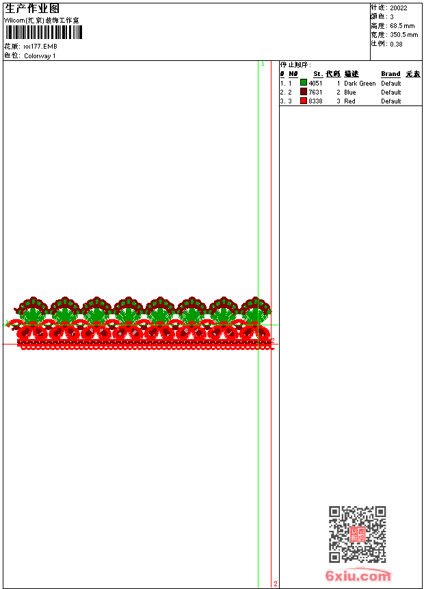 - emb花版参数: 大小:69.50 KB / 尺寸:350*69[毫米] / 针数:20022针 / 线色:3 / 格式:emb / 版本:9