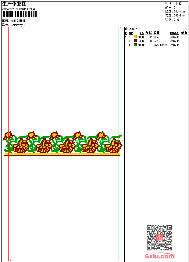 - emb花版参数: 大小:73.50 KB / 尺寸:342*70[毫米] / 针数:18422针 / 线色:3 / 格式:emb / 版本:9
