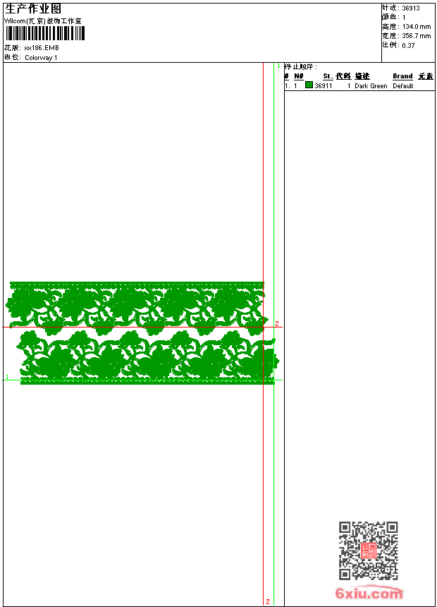- emb花版参数: 大小:128.50 KB / 尺寸:357*134[毫米] / 针数:36913针 / 线色:1 / 格式:emb / 版本:9