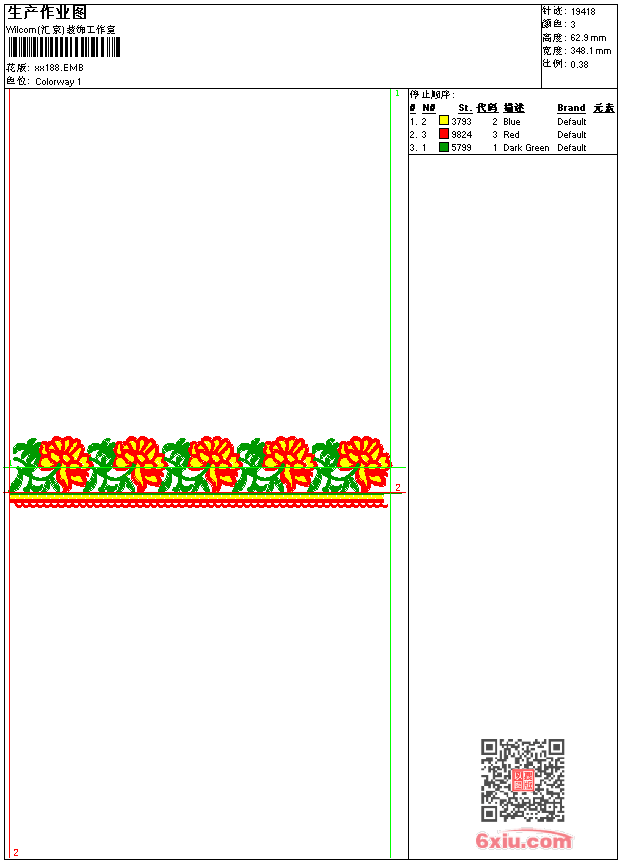 - emb花版参数: 大小:71.00 KB / 尺寸:348*63[毫米] / 针数:19418针 / 线色:3 / 格式:emb / 版本:9