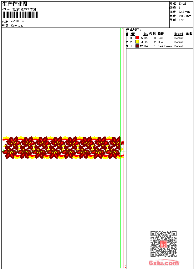 - emb花版参数: 大小:75.00 KB / 尺寸:342*63[毫米] / 针数:23426针 / 线色:3 / 格式:emb / 版本:9