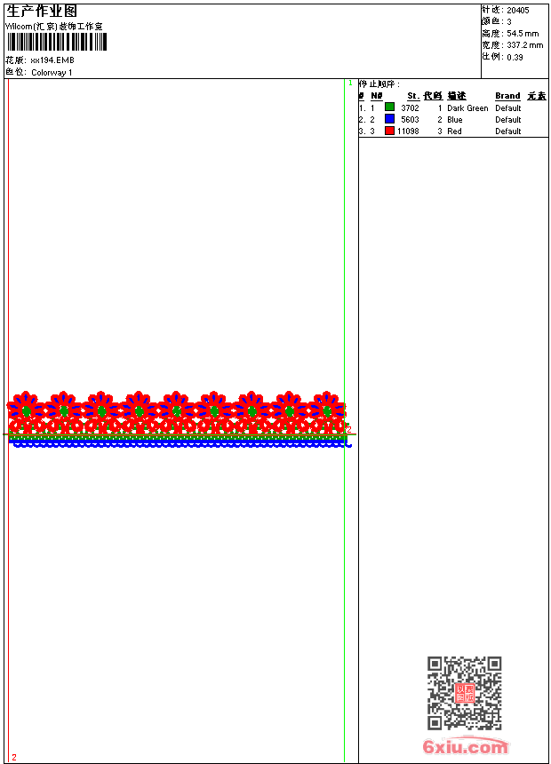 - emb花版参数: 大小:55.00 KB / 尺寸:337*55[毫米] / 针数:20405针 / 线色:3 / 格式:emb / 版本:9