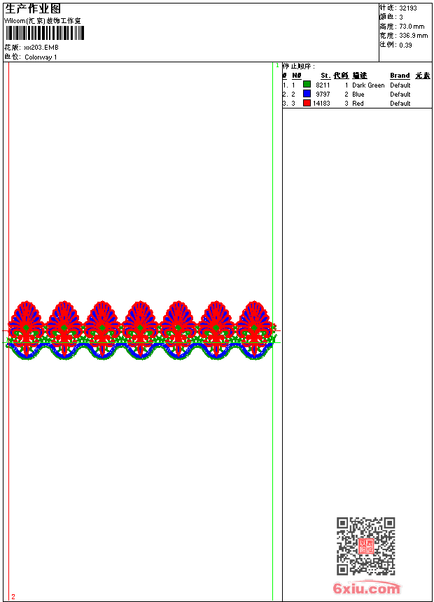 - emb花版参数: 大小:182.50 KB / 尺寸:337*73[毫米] / 针数:32193针 / 线色:3 / 格式:emb / 版本:9