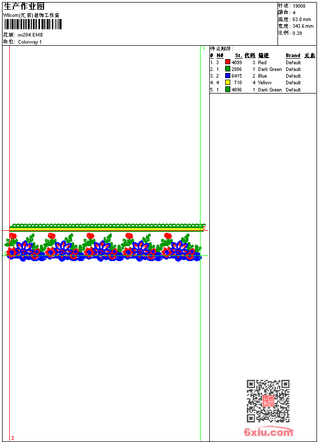 - emb花版参数: 大小:83.00 KB / 尺寸:344*64[毫米] / 针数:19008针 / 线色:4 / 格式:emb / 版本:9
