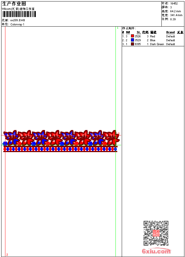 - emb花版参数: 大小:48.50 KB / 尺寸:341*64[毫米] / 针数:16452针 / 线色:3 / 格式:emb / 版本:9