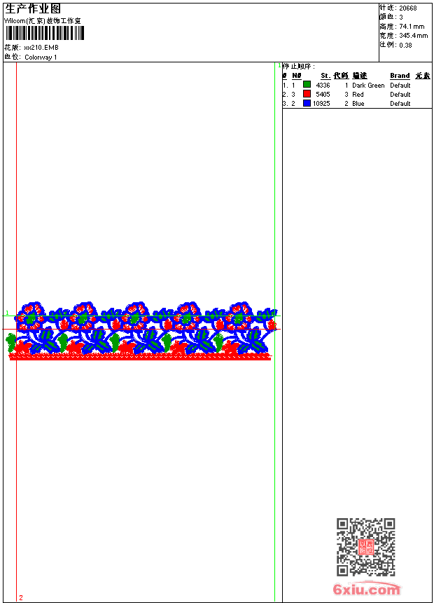 - emb花版参数: 大小:55.00 KB / 尺寸:345*74[毫米] / 针数:20668针 / 线色:3 / 格式:emb / 版本:9