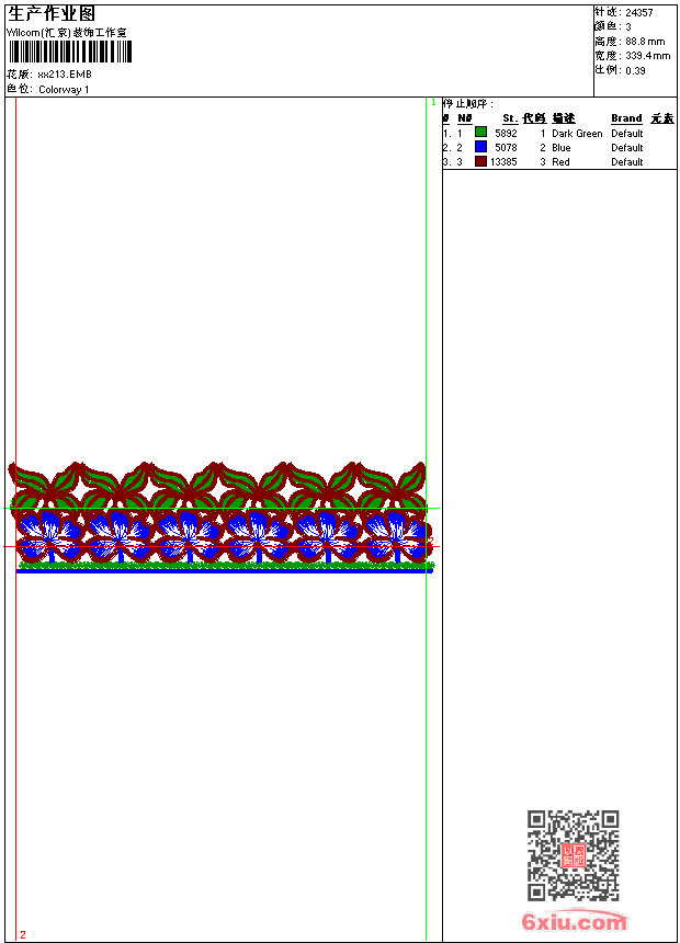 - emb花版参数: 大小:76.00 KB / 尺寸:339*89[毫米] / 针数:24357针 / 线色:3 / 格式:emb / 版本:9