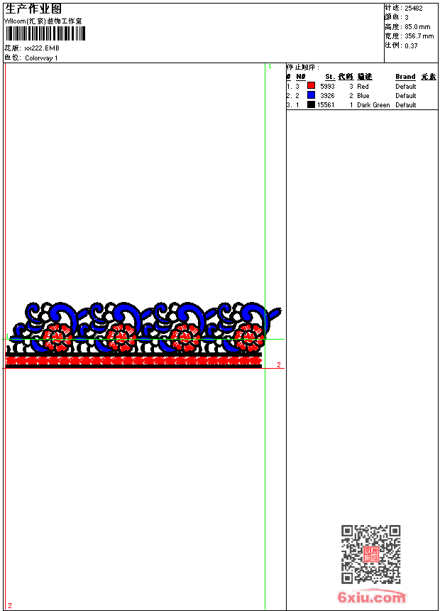 - emb花版参数: 大小:144.50 KB / 尺寸:357*85[毫米] / 针数:25482针 / 线色:3 / 格式:emb / 版本:9