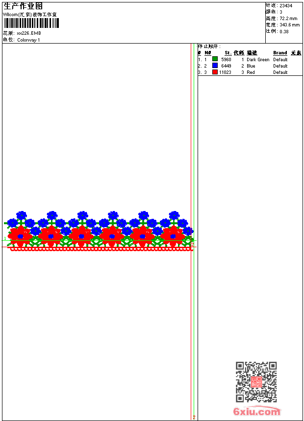 - emb花版参数: 大小:87.50 KB / 尺寸:344*72[毫米] / 针数:23434针 / 线色:3 / 格式:emb / 版本:9