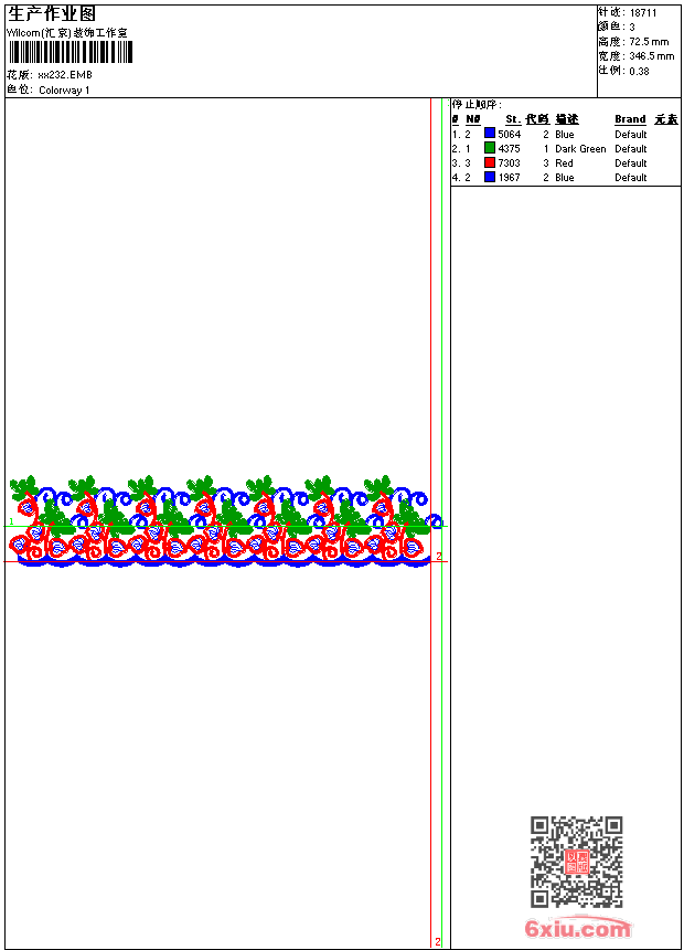 - emb花版参数: 大小:97.50 KB / 尺寸:347*72[毫米] / 针数:18711针 / 线色:3 / 格式:emb / 版本:9