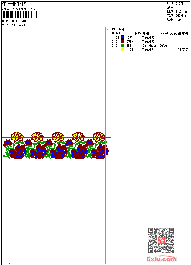 - emb花版参数: 大小:154.50 KB / 尺寸:345*88[毫米] / 针数:21578针 / 线色:4 / 格式:emb / 版本:9
