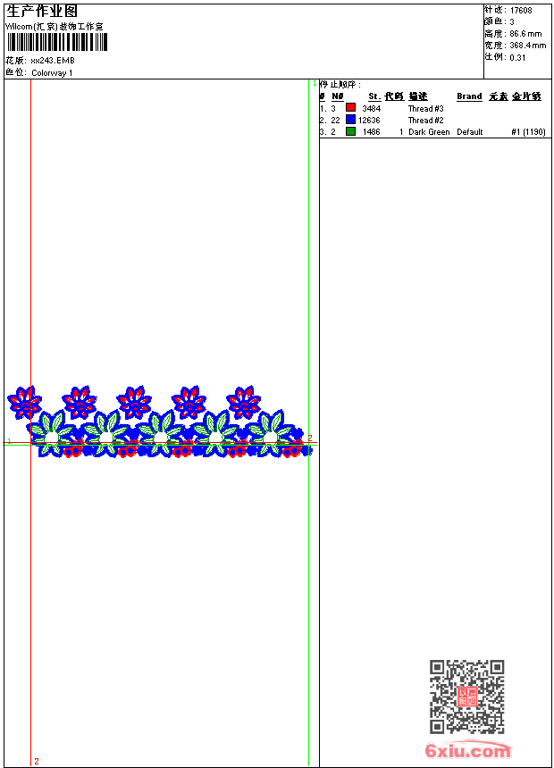 - emb花版参数: 大小:274.50 KB / 尺寸:368*87[毫米] / 针数:17608针 / 线色:3 / 格式:emb / 版本:9