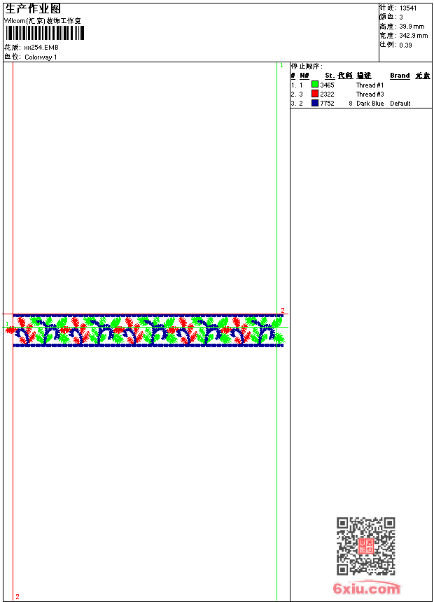 - emb花版参数: 大小:29.50 KB / 尺寸:343*40[毫米] / 针数:13541针 / 线色:3 / 格式:emb / 版本:9