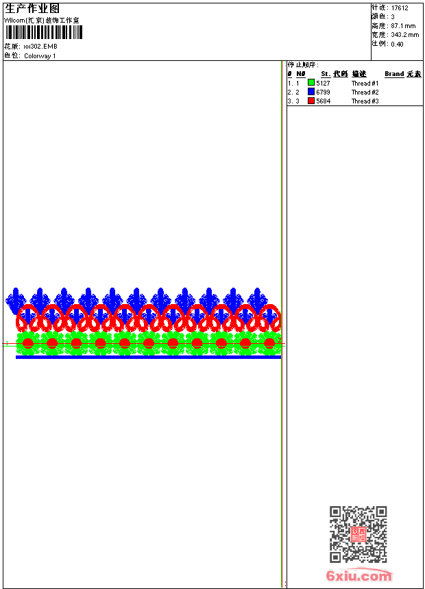 - emb花版参数: 大小:37.00 KB / 尺寸:343*87[毫米] / 针数:17612针 / 线色:3 / 格式:emb / 版本:9