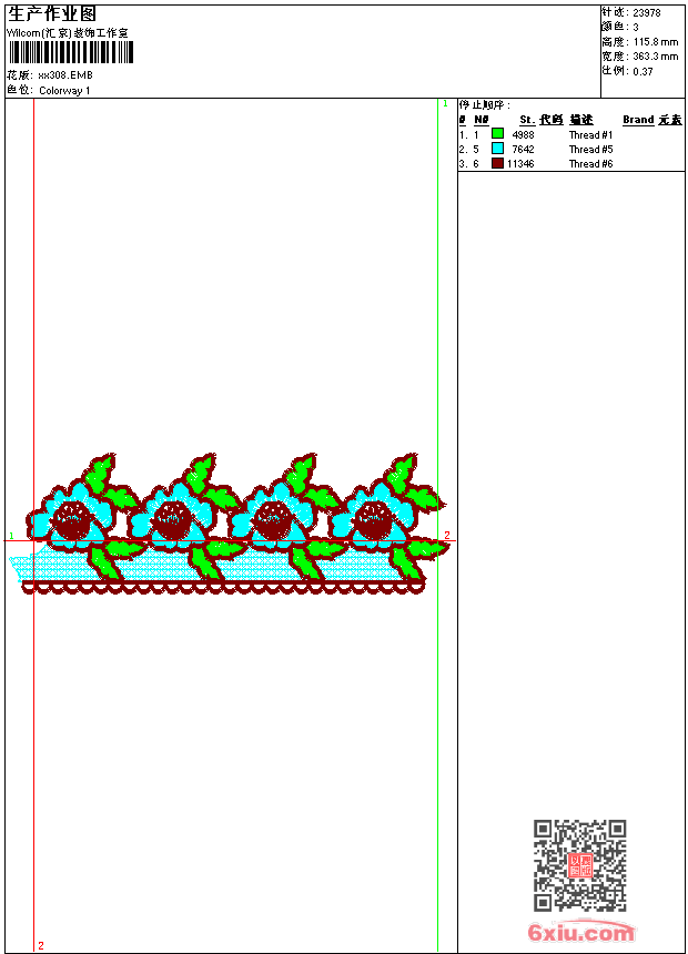 - emb花版参数: 大小:138.00 KB / 尺寸:363*116[毫米] / 针数:23978针 / 线色:3 / 格式:emb / 版本:9