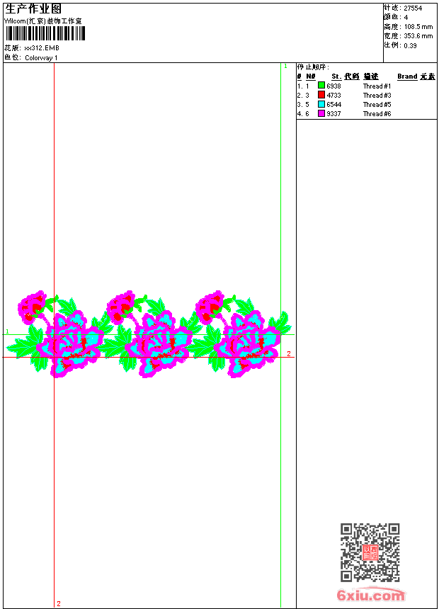 - emb花版参数: 大小:71.00 KB / 尺寸:354*109[毫米] / 针数:27554针 / 线色:4 / 格式:emb / 版本:9