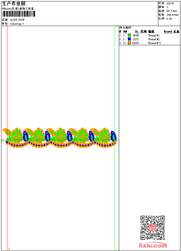 - emb花版参数: 大小:50.00 KB / 尺寸:344*61[毫米] / 针数:22210针 / 线色:3 / 格式:emb / 版本:9