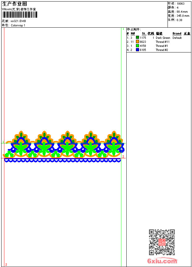 - emb花版参数: 大小:44.50 KB / 尺寸:346*88[毫米] / 针数:18063针 / 线色:4 / 格式:emb / 版本:9