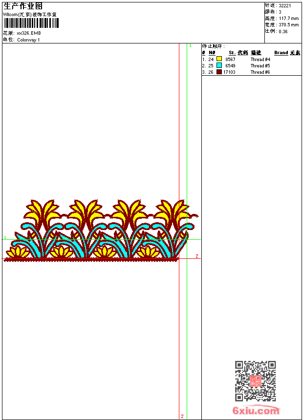 - emb花版参数: 大小:62.50 KB / 尺寸:371*118[毫米] / 针数:32221针 / 线色:3 / 格式:emb / 版本:9