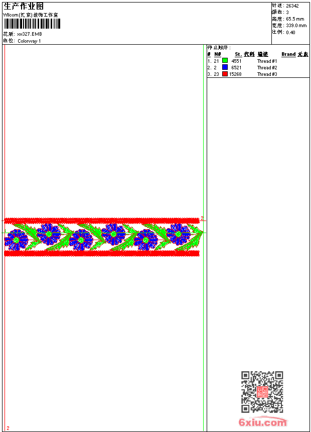 - emb花版参数: 大小:78.00 KB / 尺寸:339*65[毫米] / 针数:26342针 / 线色:3 / 格式:emb / 版本:9