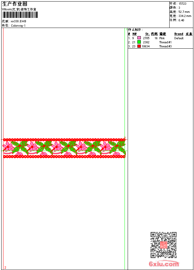 - emb花版参数: 大小:47.00 KB / 尺寸:334*53[毫米] / 针数:15723针 / 线色:3 / 格式:emb / 版本:9