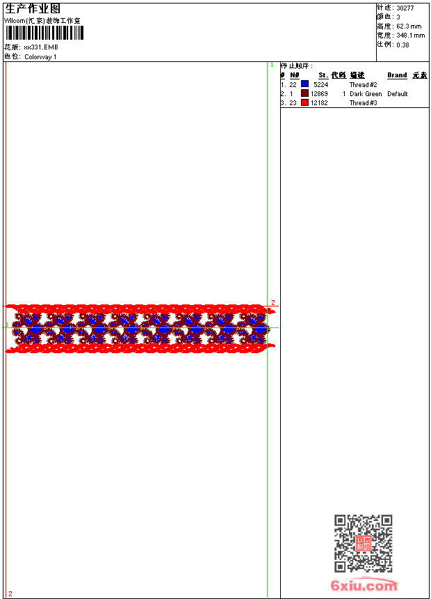 - emb花版参数: 大小:62.00 KB / 尺寸:348*62[毫米] / 针数:30277针 / 线色:3 / 格式:emb / 版本:9