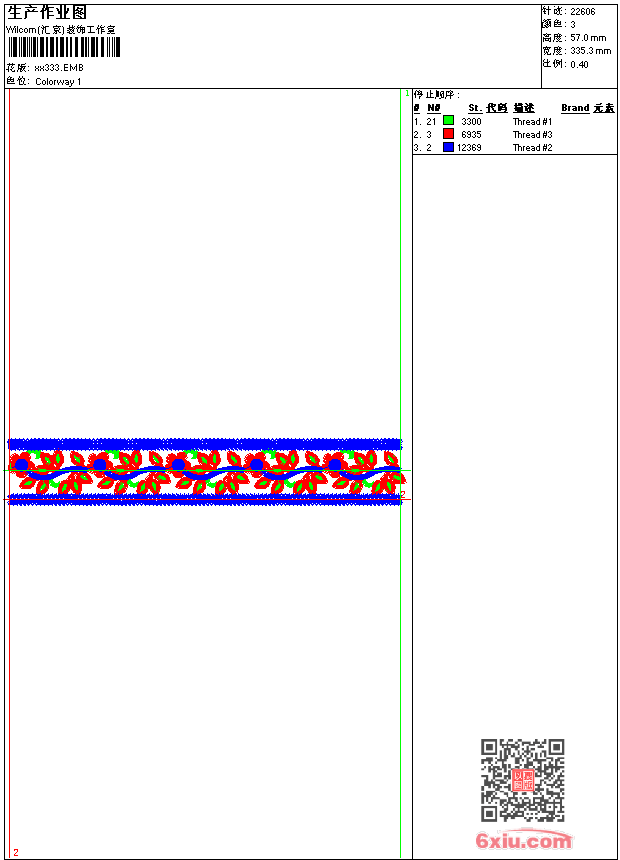 - emb花版参数: 大小:72.50 KB / 尺寸:335*57[毫米] / 针数:22606针 / 线色:3 / 格式:emb / 版本:9