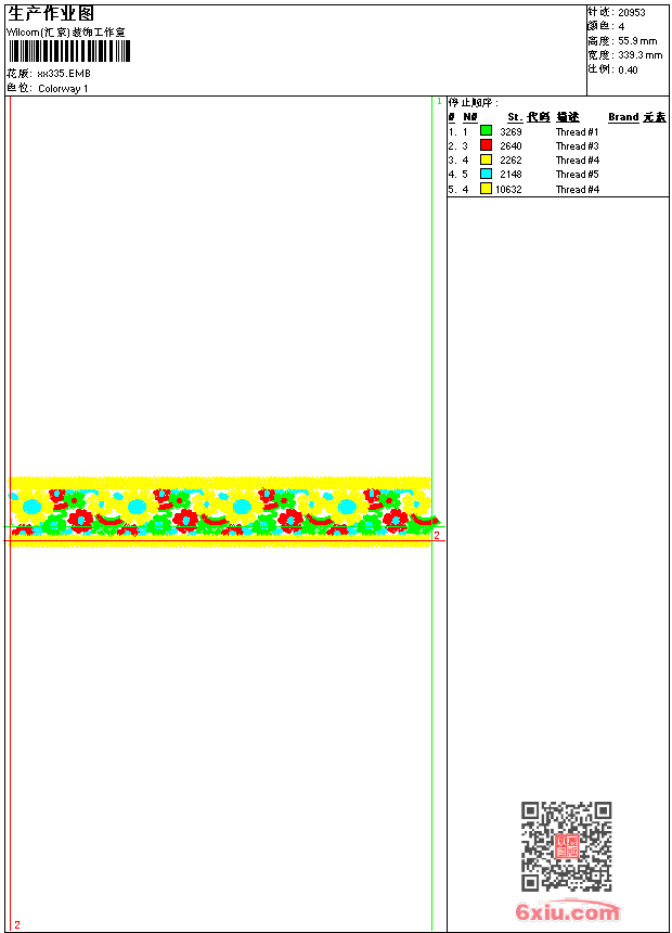 - emb花版参数: 大小:83.50 KB / 尺寸:339*56[毫米] / 针数:20953针 / 线色:4 / 格式:emb / 版本:9