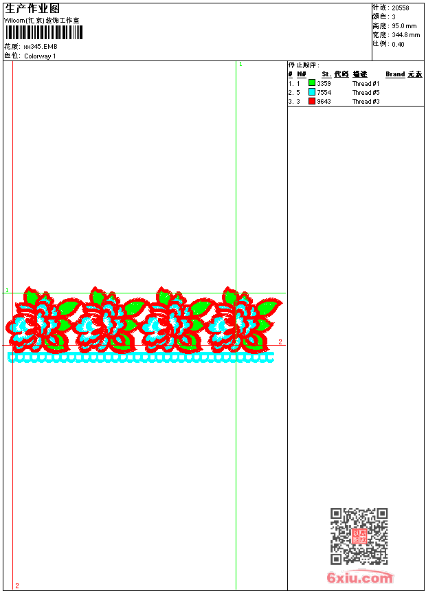 - emb花版参数: 大小:48.00 KB / 尺寸:345*95[毫米] / 针数:20558针 / 线色:3 / 格式:emb / 版本:9
