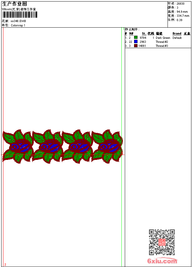 - emb花版参数: 大小:110.00 KB / 尺寸:335*95[毫米] / 针数:26830针 / 线色:3 / 格式:emb / 版本:9