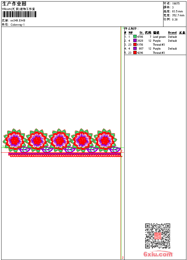 - emb花版参数: 大小:106.50 KB / 尺寸:353*84[毫米] / 针数:19875针 / 线色:3 / 格式:emb / 版本:9