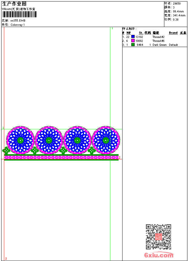 - emb花版参数: 大小:82.50 KB / 尺寸:341*99[毫米] / 针数:29650针 / 线色:3 / 格式:emb / 版本:9