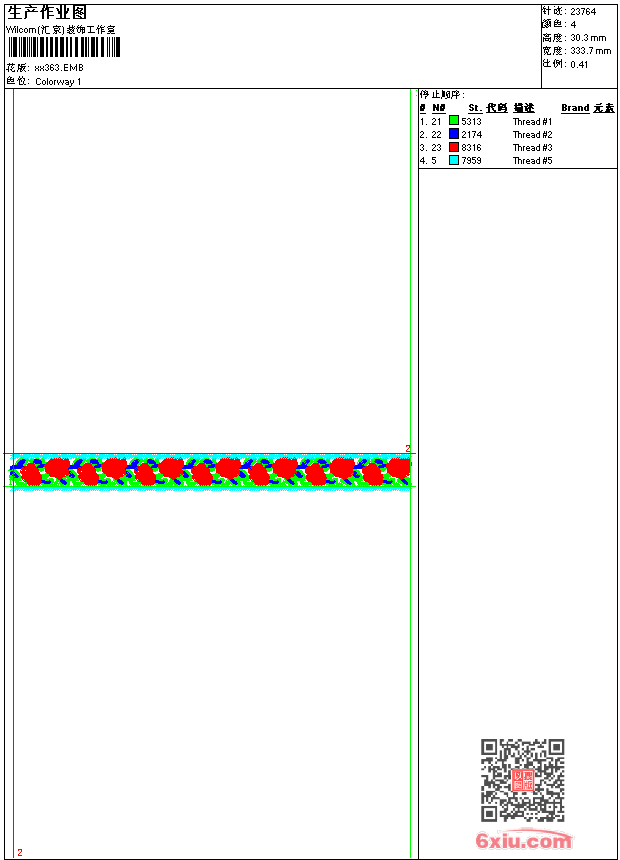 - emb花版参数: 大小:39.50 KB / 尺寸:334*30[毫米] / 针数:23764针 / 线色:4 / 格式:emb / 版本:9