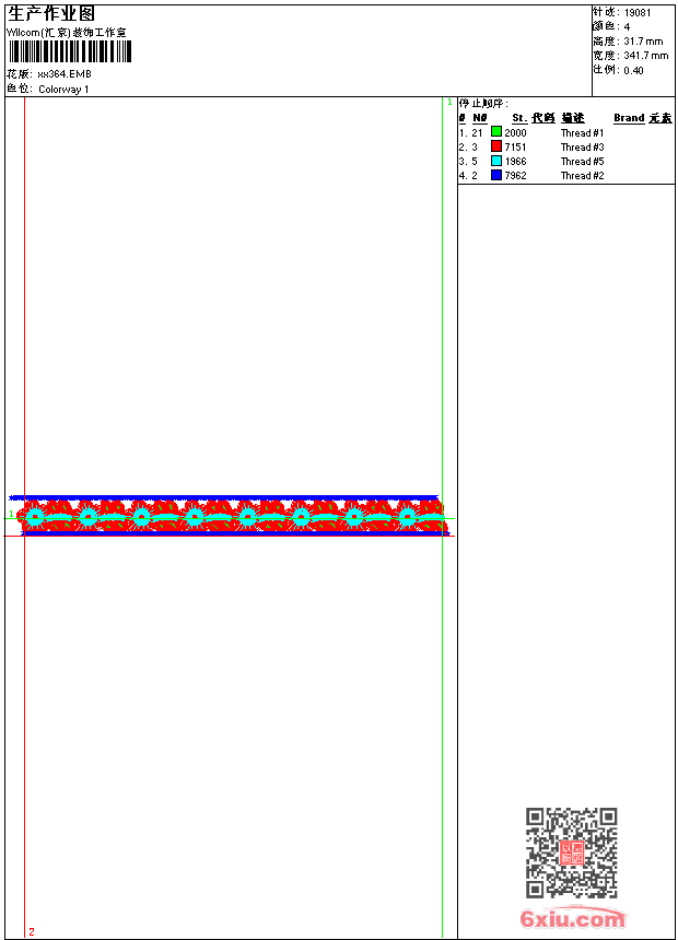- emb花版参数: 大小:31.00 KB / 尺寸:342*32[毫米] / 针数:19081针 / 线色:4 / 格式:emb / 版本:9