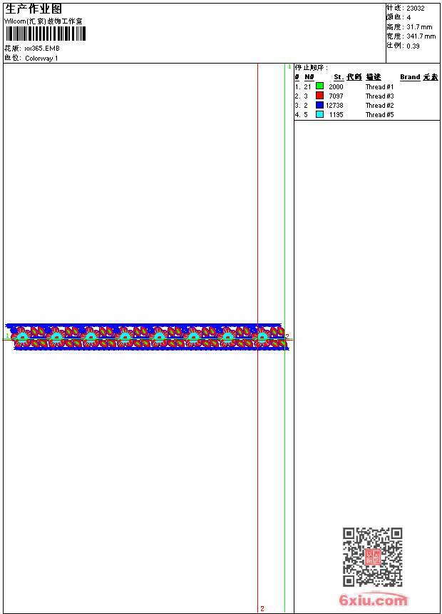 - emb花版参数: 大小:34.50 KB / 尺寸:342*32[毫米] / 针数:23032针 / 线色:4 / 格式:emb / 版本:9